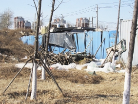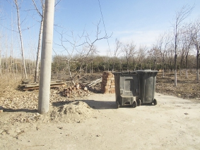 西集镇侯各庄村村边林地积存生活垃圾