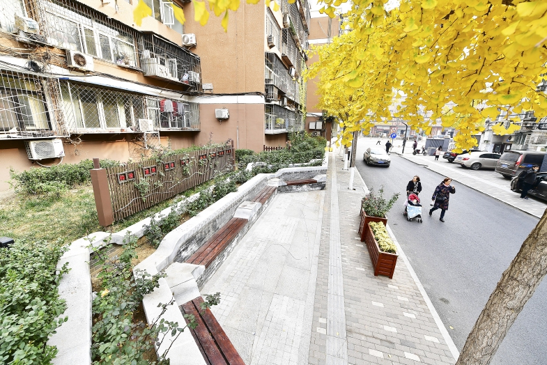 整治后的潞河中学北街增添口袋公园和居民休憩空间。记者 唐建/摄
