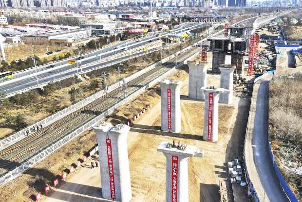 京唐铁路北京段主要施工任务为“一桥三线”,即京唐跨京哈铁路特大桥,京唐京哈上、下行联络线,京哈施工便线。目前,京唐铁路通州区范围内桩基施工完成设计总量的81%,承台完成设计总量的62%,墩柱完成设计总量的42%。项目部正在加紧跨京哈铁路特大桥桩基、承台、墩柱及现浇梁、连续梁等工程的施工建设。