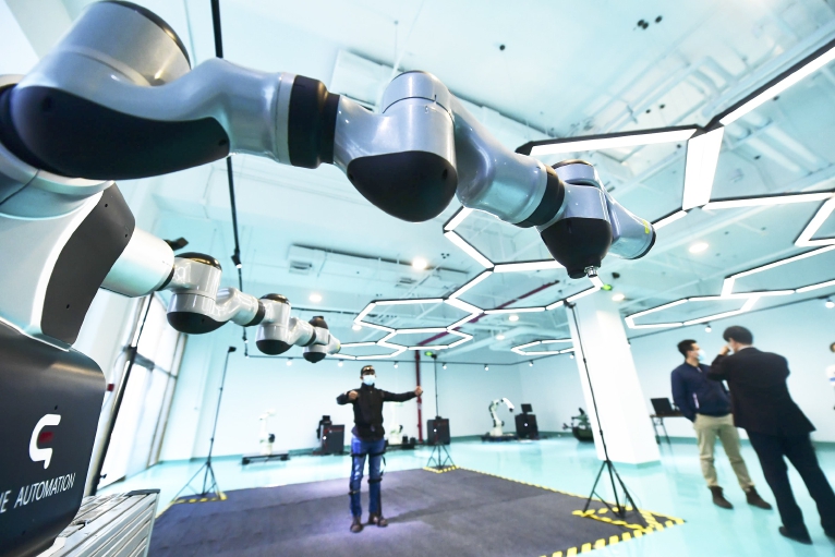 北京智殷机器人科技有限公司的展台也吸引了许多人驻足。公司成立于2015年,由著名机器人专家甘中学博士领衔创立,拥有一批发明专利和自主知识产权,是一家具有国际先进、国内领先水平的智能机器人公司。“我们非常看好张家湾设计小镇的发展环境、产业政策和生活配套,创新中心作为以科技创新为产业方向的重点园区,在创新优势资源汇聚上愈发具有吸引力。”智殷机器人科技有限公司工作人员李博程说。