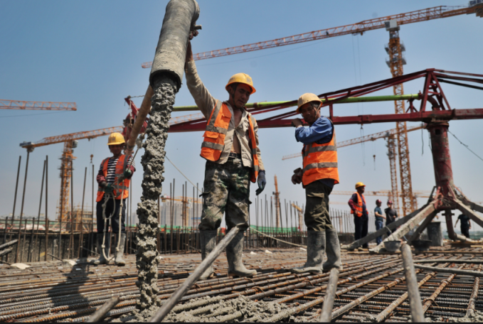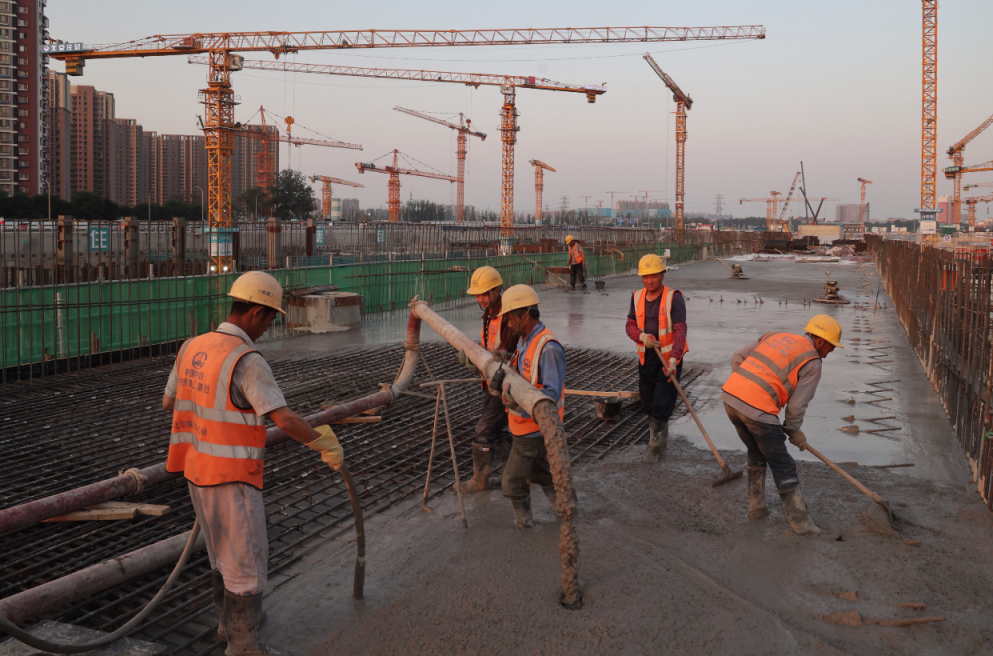 城市副中心站综合交通枢纽项目工程主站房核心西区,工人师傅忙着浇筑混凝土,为主体结构封顶做最后冲刺。