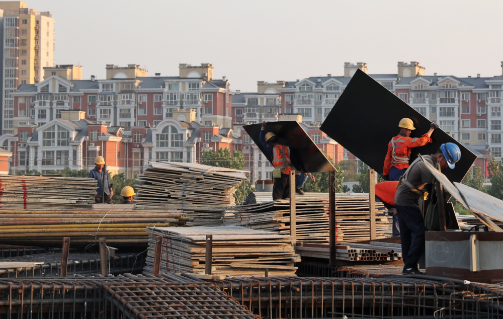 主站房核心西区,工人师傅们忙着搬运、安装混凝土模板,随后将开始混凝土浇筑工作。