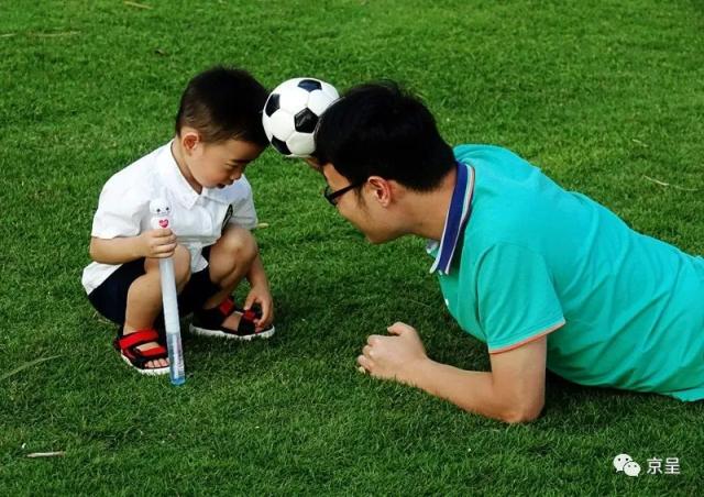 陶然亭公园草地上,父子俩一起玩耍。闫立军摄