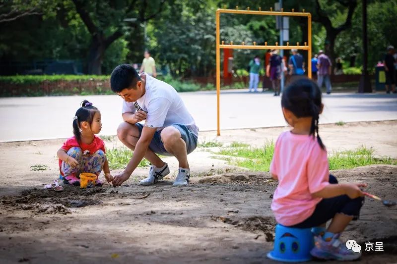 地坛公园,爸爸陪着女儿玩泥巴。刘志农摄