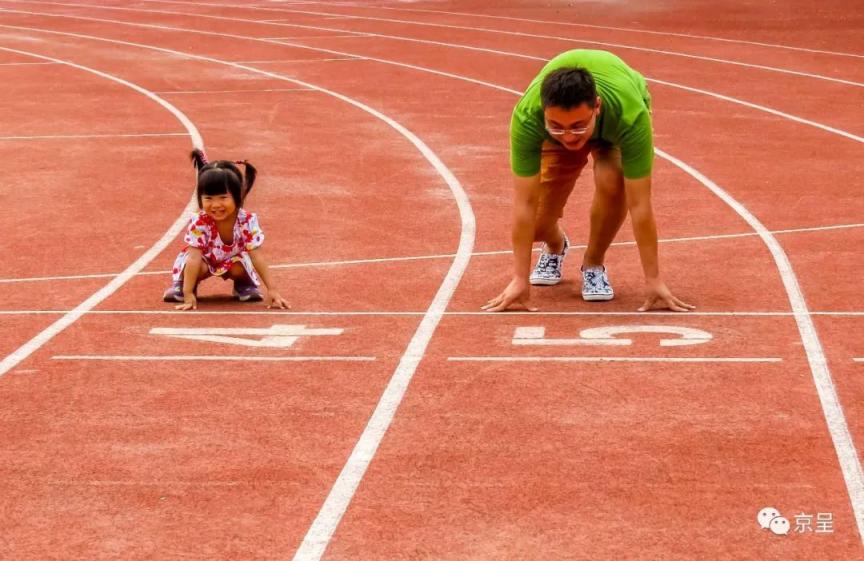 昌平某学校的操场跑道上,父女二人赛跑。人生赛道上,父亲陪孩子一同起跑。陈啟亮摄