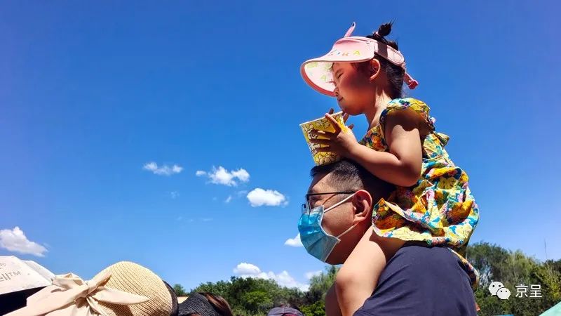 丰台世界花卉大观园里,一名娃娃骑在爸爸的肩膀上看风景。覃世明摄