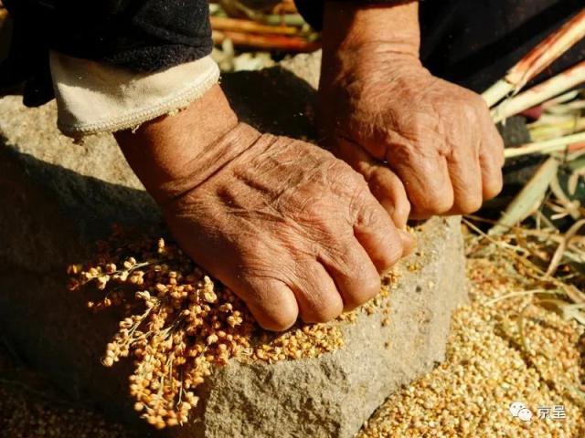 密云古北口镇,收获的季节,父亲用双手在石头上搓下谷粒。这双沧桑的手,为全家的温饱日夜操劳。苏长荣摄