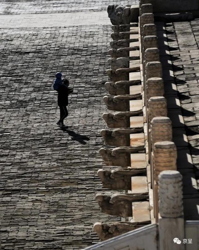 故宫,为了能使儿子更近距离地观看石栏石雕,父亲把儿子驮在肩上。梁平摄
