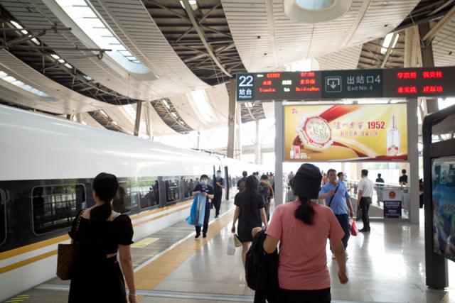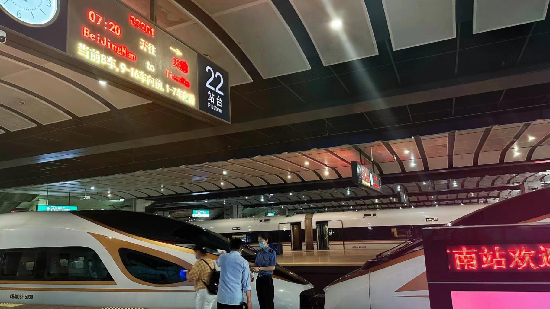 “车上空座很多,过去可不是,有人买不到座站着,有买到中途站上车补票的。”今早6时59分,家住天津武清的童先生抵达北京南站,下车后他才发现,自己乘坐的是首趟常态化开行的京津城际重联列车。“21分钟,武清到北京,太快了。到南站后,4号线换乘7号线,到广渠门外下车,走到公司很方便。从家到单位,全程也就1小时。”童先生说,现在天气热,他每天都会趁着凉快早点出门,这趟重联列车时间挺合适。