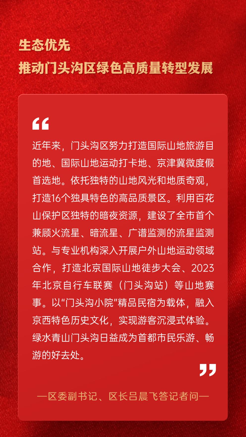 答记者问|生态优先 推动门头沟区绿色高质量转型发展