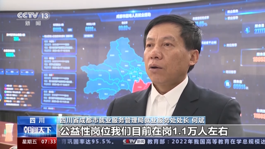 四川省成都市就业服务管理局就业服务处处长 何斌:我们认定了61家就业援助基地,公益性岗位我们目前在岗1.1万人左右,公益性岗位和就业援助基地空岗还有2300余个,可以随时满足就业困难人员托底安置的需求。