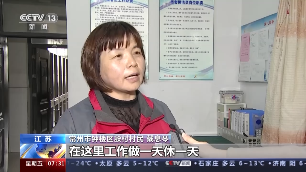 在江苏常州,当地村委会通过与附近的职业院校签订协议,为就业困难的村民提供保洁、绿化养护、门卫、宿管、食堂职工等各类公益性岗位,方便他们在家门口就业。
