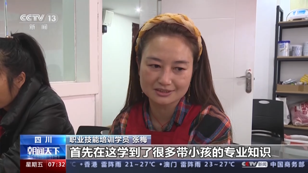 职业技能培训学员 张梅:首先在这学到了很多带小孩的专业知识,这是一门技能,以后找工作有更多的选择。
