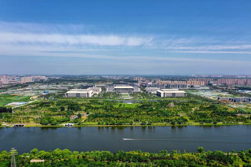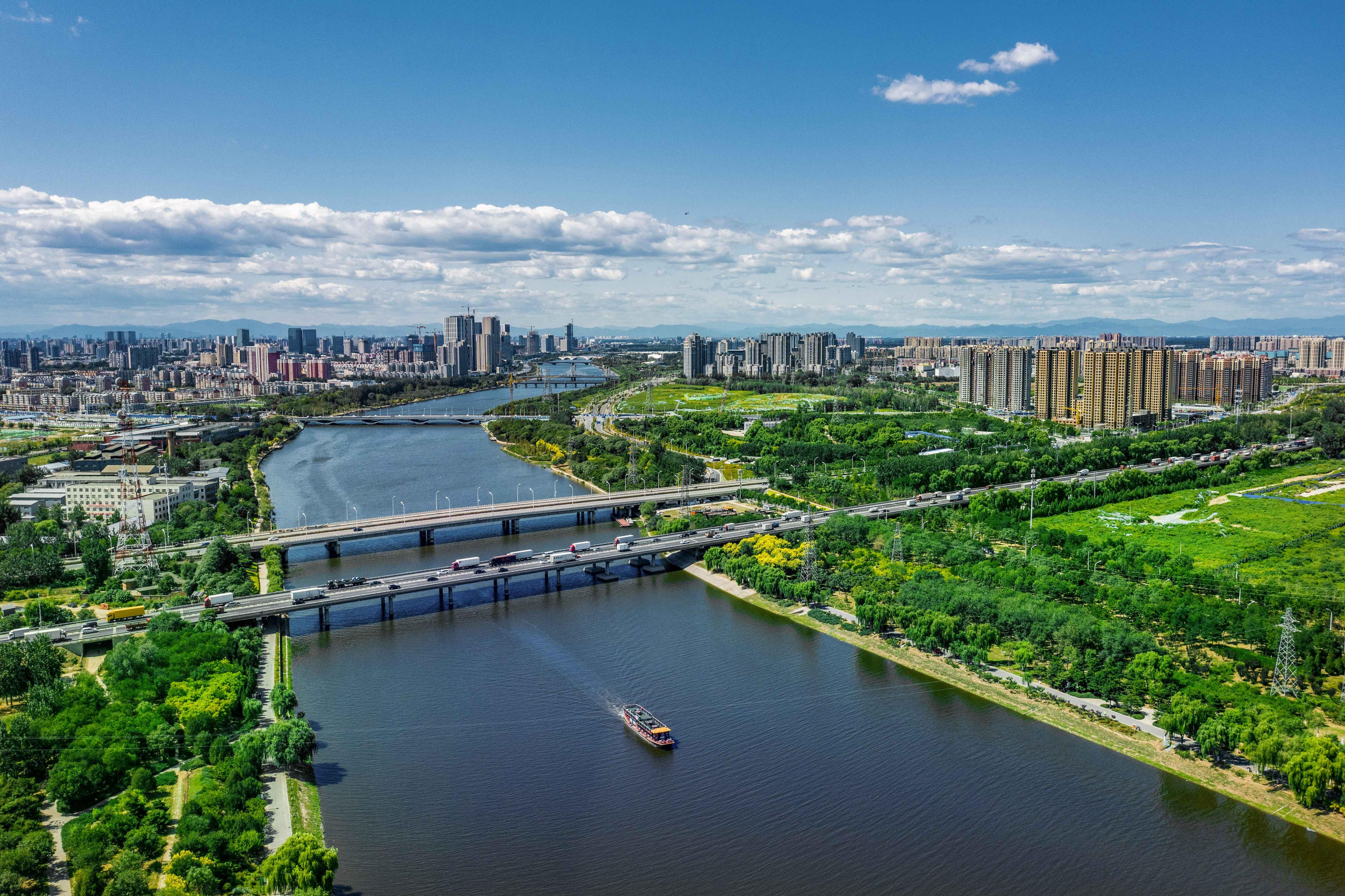 北京城市副中心呈现蓝绿交织美景。北京日报客户端记者潘之望摄