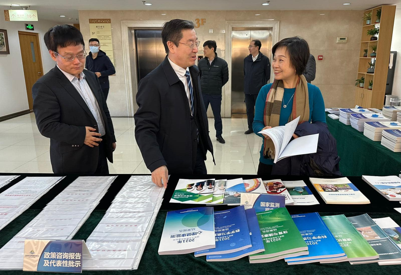 在教育部教育考试院,蔡若莲了解了该院在内地承办各类考试的工作。目前,大湾区内地城市设有港人子弟学校,供港人子女修读香港课程,进一步推动两地教育合作。关于在大湾区内地城市按试点形式设立香港中学文凭考试(DSE,相当于高考)考场,以便利港人子弟应考,教育考试院也提供了不少意见和建议。