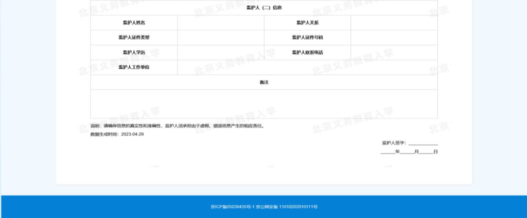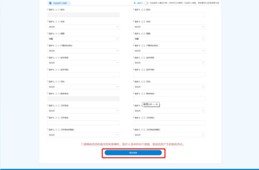 2.法定监护人根据实际情况和系统提示来填写详细信息。确认无误后点击“提交信息”,完成详细信息录入。如图9所示:
