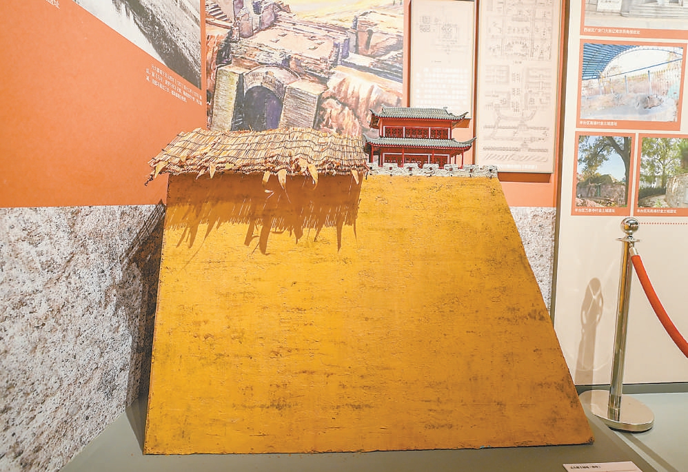 元大都土城墙模型,上面还覆盖有芦苇制成的“蓑衣”。