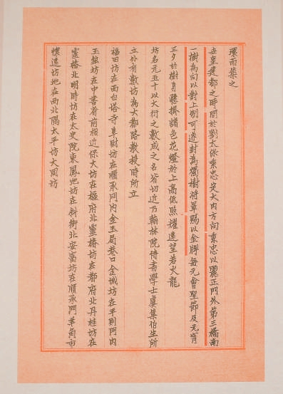 北京自元代大兴府、明清顺天府,至民国开始划区立市,其间府志、都志、市志记载着朝代更替、风物变迁和文脉传承;通州、宛平、永宁等州县志则记录了一方土地上的疆域形胜、城池公署和人物风貌;另有一批专志,对山川、街巷、寺庙、会馆等某一项事物详实记录;类似志体的名人笔记等文献也异常丰富,描绘名山秀水、古都风物,可与方志互为补充印证。