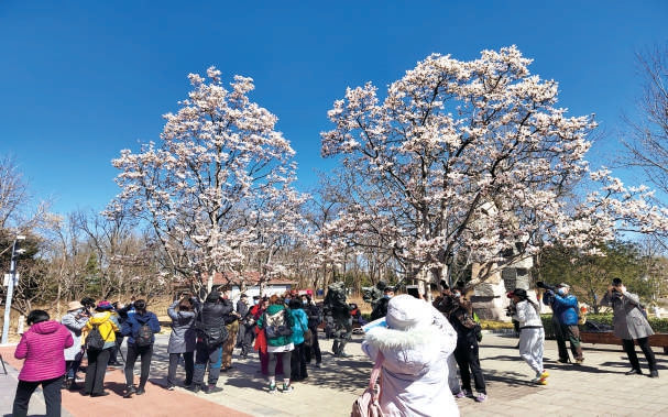 “太美了!”伴随北京国际雕塑公园“玉兰花苑” 5000余株玉兰渐次开放,来赏花打卡的市民越来越多。