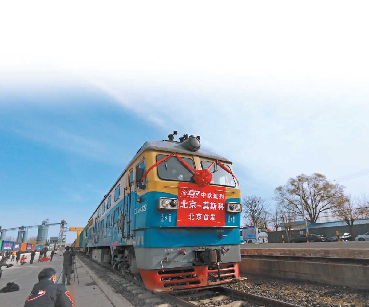 今天上午,北京地区首趟中欧班列满载货物,从平谷马坊站驶出,预计18天后抵达俄罗斯首都莫斯科,全程约9000公里。 本报记者 甘南摄