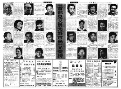 1992年3月4日《北京晚报》对“首都见义勇为好市民”的报道。