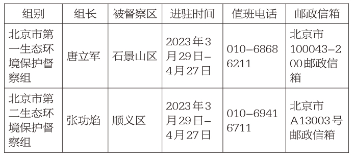 第二轮第五批北京市生态环境保护督察进驻一览表