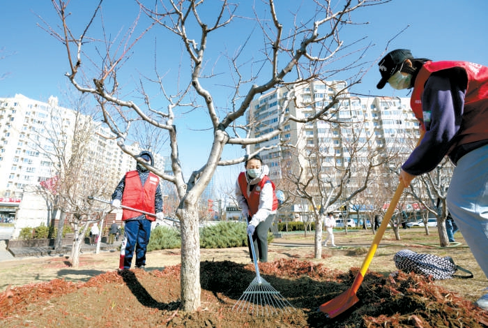 今天是植树节,市民纷纷走出家门参与“绿地大扫除”。
