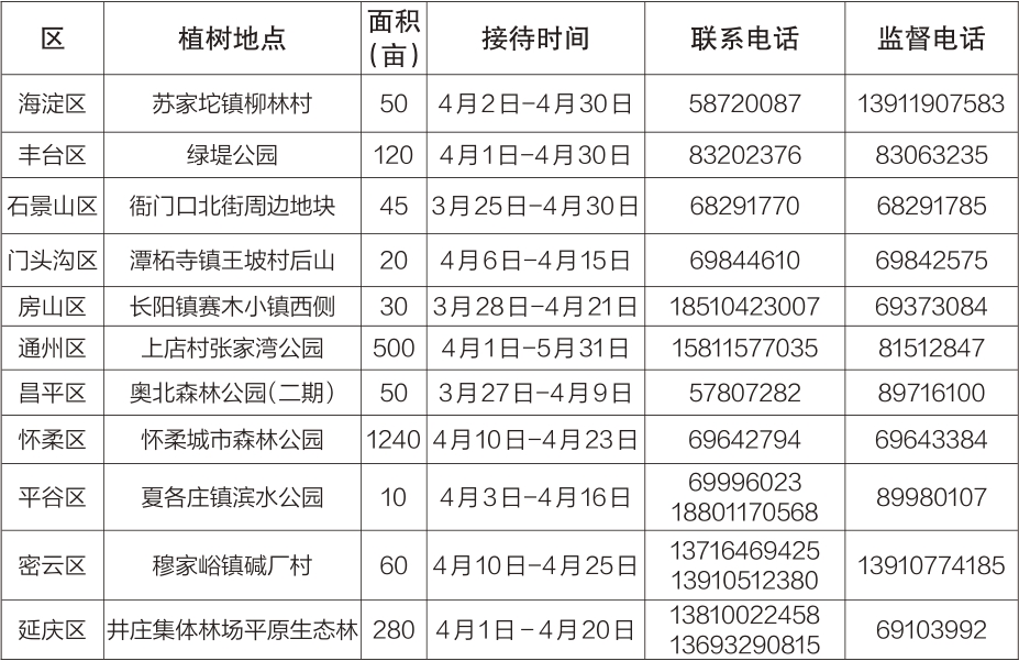 北京市2023年社会义务植树接待点