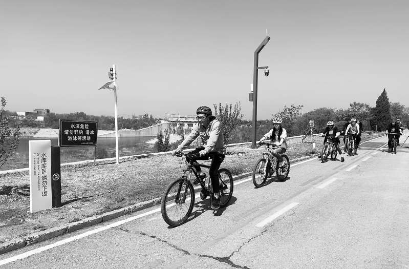 今天上午,永定河滞洪水库中堤骑行道上,三三两两的骑行者结伴而行,伴着啾啾鸟鸣、清脆蛙声,十分惬意。记者了解到,永定河滞洪水库中堤开放提升工程已经完工,将中堤道路打造成为全长20公里的环形滨水道路慢行系统,并将于本月28日正式对公众开放。开放后,市民可通过微信小程序“乐活中堤”预约前往体验。