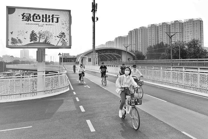市民在回龙观自行车专用路上骑行。本报记者 邓伟 摄