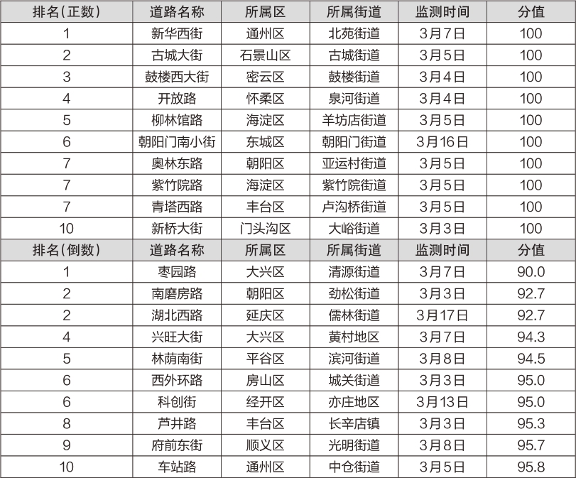 2023年3月份首都城市环境建设管理考核结果公布