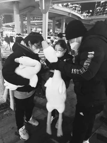 昨天,在国贸地铁站出口,几名男子正抱着毛茸茸的大鹅玩偶,路过的行人投来好奇的目光,但只要稍有停顿,这些抱着“大鹅”的人马上就会上前搭讪,“领一个走呗,你看看多可爱!”男子一直强调,大鹅是免费的,只需要扫个码,“就扫码而已,操作很简单的。”