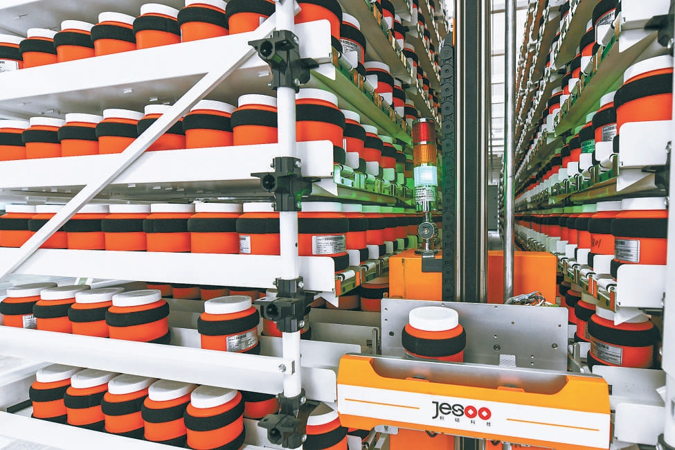 土壤样品库采用了自动传输与存储设备,由计算机软件控制入库及样品调取,一罐罐土壤样本整齐排列在样本架上。