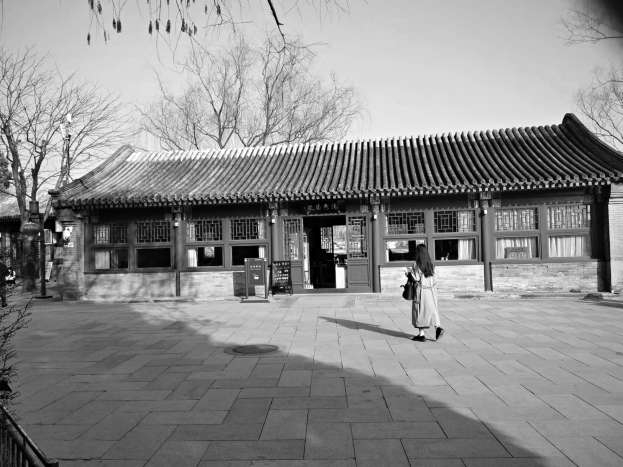 说完了双虹榭,再说说揽翠轩。揽翠轩是个小茶社,面积不大,但颇有特色。它位于琼华山顶的白塔北面,与白塔在同一基座上,可以说是北京城里最高的茶馆。