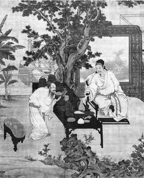 (明)杜堇《玩古图》(局部)反映了明代中晚期文人士大夫的博古风尚,图中绘有各式香炉和焚香用器。