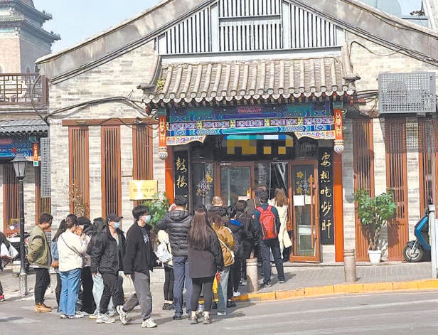 一位探店的博主透露:鼓楼大街,本身就是自带流量的百年老街,又有网络的推动,一些特色的美食都有可能成网红。因此,各种网红店也相继落户在此地,探店的博主更是争先恐后地前往测评……到网上一查,“北京首家实体”“火爆全网”的标签可不少。