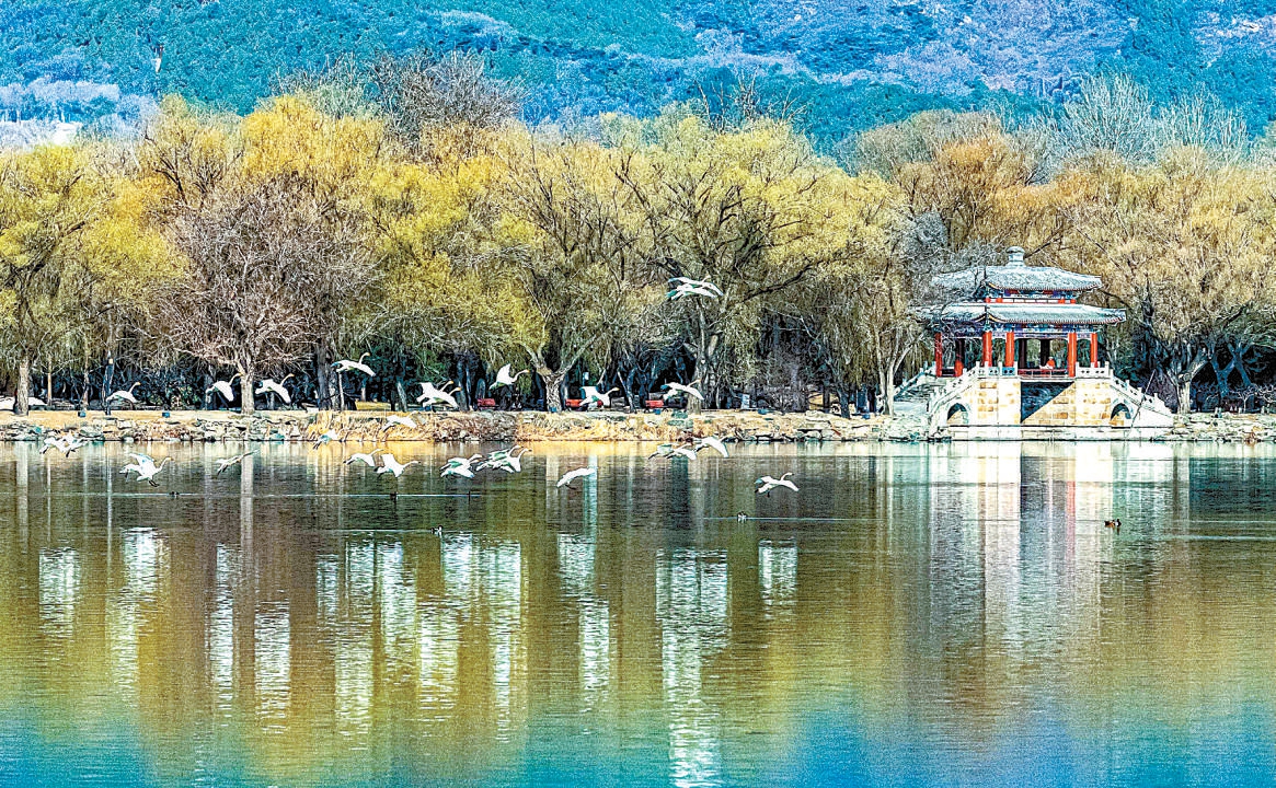 春风送暖,鸟类迁徙,数十只优雅的天鹅现身北京颐和园,在昆明湖上翩翩起舞,风景如画。 林学会 摄