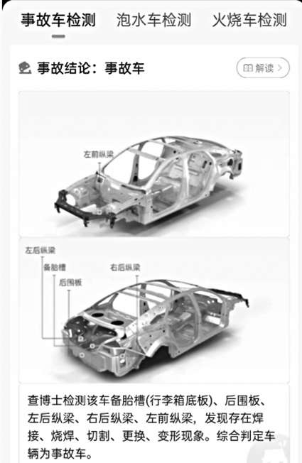 “竟然发现车辆过户了四五次,且使用性质是营转非。”黄先生说,当时购买车辆时,商家说这辆车是个人一手车。“如果知道是营转非车辆,我怎么会买?”然而,更大的打击还在后面。紧接着,黄先生为了更详细地了解车况,联系了第三方检测软件“查博士”,而后车辆检测结论为“事故车”。