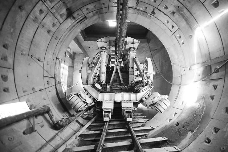 创新团队历时4年多开发的这项新技术,完全采用机械化作业,特制的大型设备直接深入地铁隧道,在道床下方掘进出直径3.1米、深度5.5米的泵房。