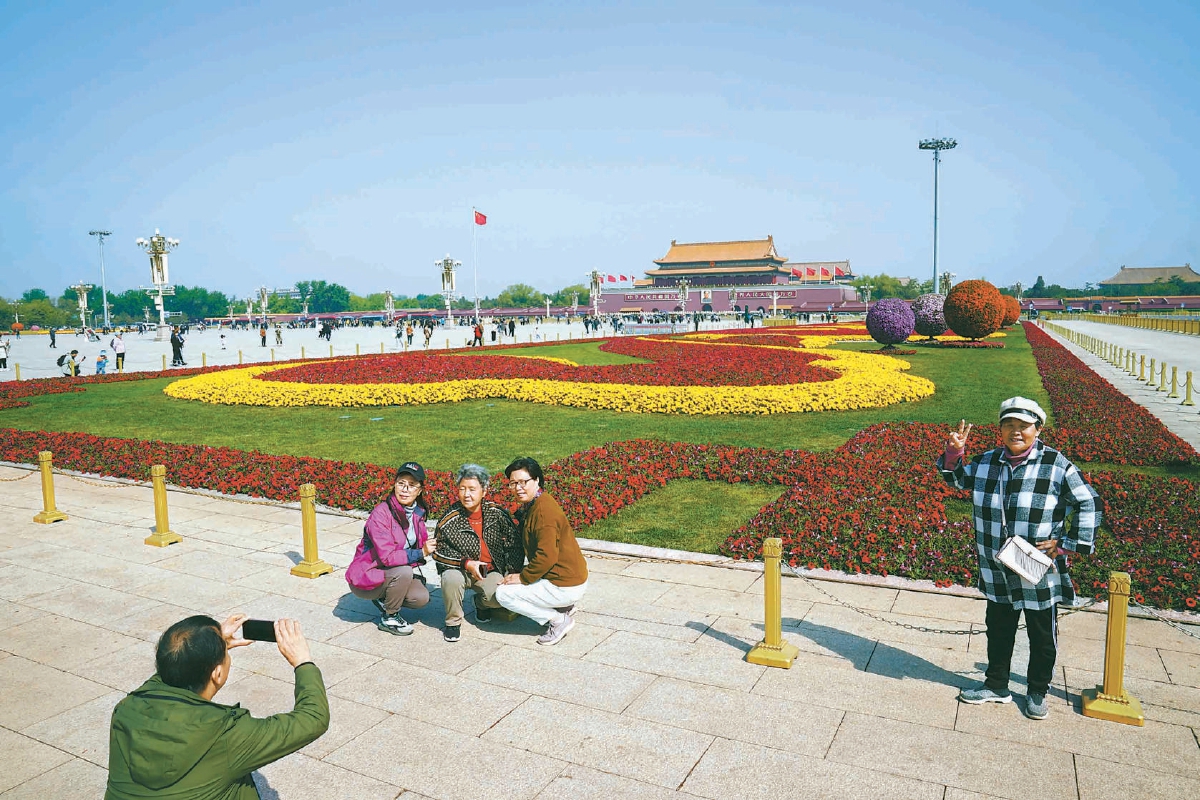 今天,天气晴朗,天安门广场东西两侧花坛里,养护的花卉被园林工人更新,花坛以崭新的面貌迎接“五一”假期的游客。 本报记者 王海欣 摄