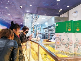 馆内会限时售卖关于“二十四节气”的限定美食。临近谷雨,是香椿上市的佳季。此时的香椿口感鲜嫩、口味醇香,属于暮春独有的味道。北京稻香村敏锐地将传统文化中的灵感融入了中式糕点的制作;在制作过程中对香椿用料十分讲究,对制作时间更是严苛把控,从采摘到制作的过程要经历数十道繁复的工序,但完成时间仅用三天,加班加点缩短制作时间,就是要最大程度地将香椿的鲜嫩感保存下来。除了应景的谷雨春芽酥,在新店里还会在谷雨当天将糕点表面撒上谷雨字样的糖粉,带给消费者满满的节气仪式感。