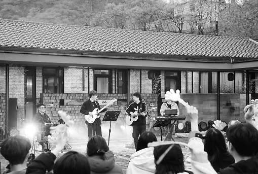 昨晚,门头沟区“小院有戏”首场演出在王平镇东马山家精品民宿“小院剧场”上演。人们跟着歌手哼唱《海阔天空》,身处小院,游人感受着山间的微风。