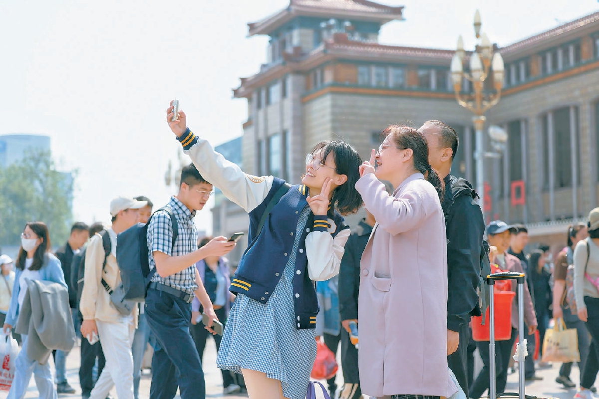 今天是“五一”假期最后一天,北京站迎来返京客流高峰。本报记者 潘之望 摄