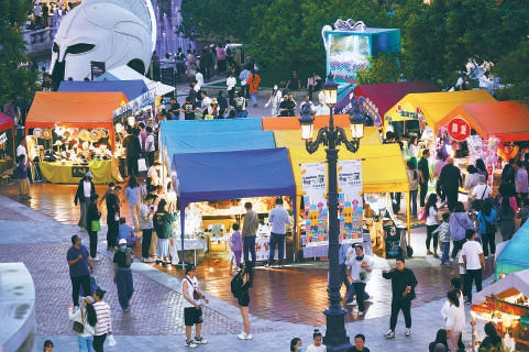 五一假期,环球影城吸引众多游客打卡。在北京环球城市大道,各具特色的店铺、丰富的餐饮,吸引不少游客来此购物消费。本报记者 武亦彬 摄