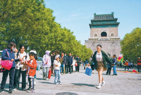 五一假期,北京中轴线上的鼓楼、什刹海景区受到市民、游客的青睐。拍照打卡、登楼远眺、漫步街巷,人们在假期休闲的同时,一览古都风貌。本报记者 方非 摄