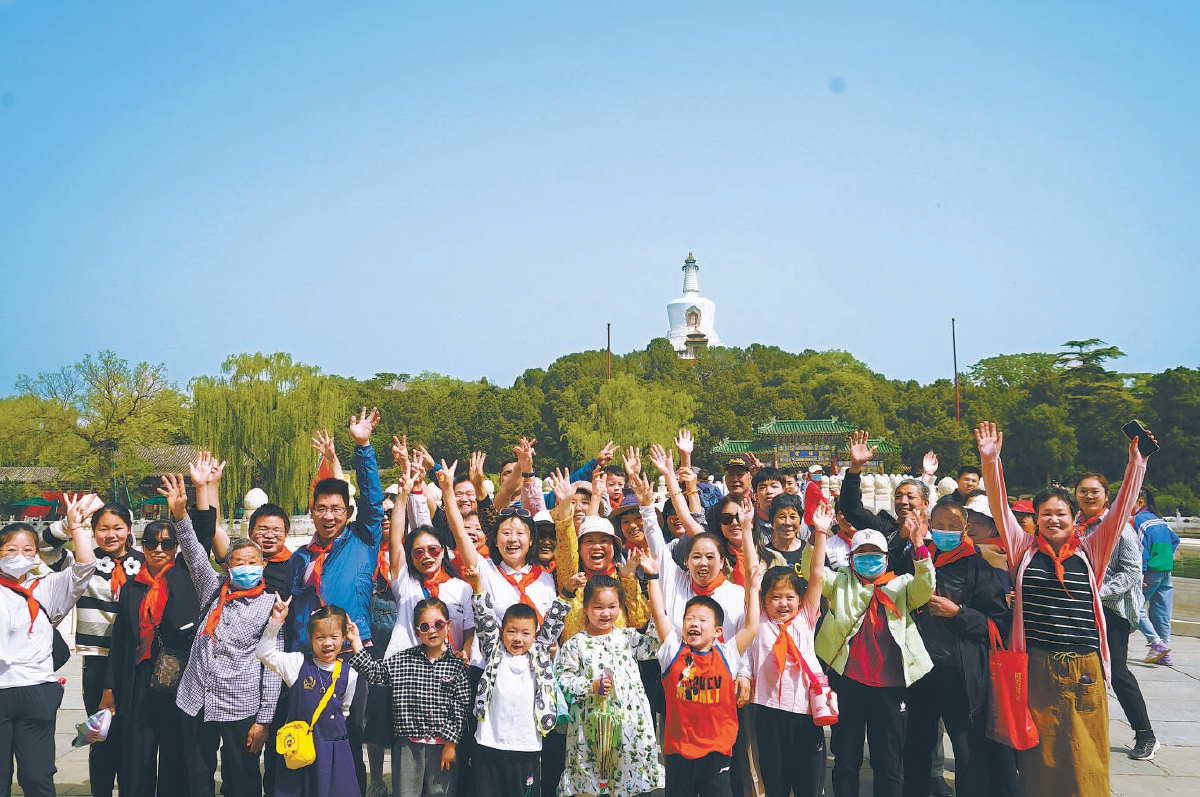 多家公园迎来游园高峰,市属公园及中国园林博物馆、国家植物园昨天共接待游客73.51万人次,比2019年增长6.54%,创近几年五一假期单日新高。今天上午,北海公园依旧人流如织,一片欢声笑语。 本报记者 程功 摄