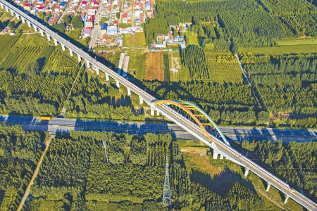 一列复兴号智能动车组驶过“彩虹桥”——京雄城际铁路霸雄特大桥。本报特约摄影 孙立君
