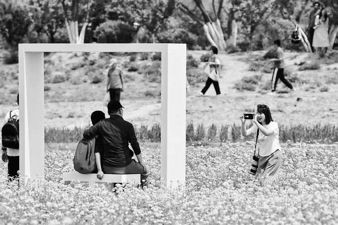 温榆河公园示范区方圆2平方公里,集合了山水林田湖草等各种生境。芸上梯田是示范区西园的一处特色景点,梯田风光随季节变换,在春秋时节分别呈现油菜花和向日葵的花海赏景体验。今年,公园在芸上梯田特别设置了适合拍照打卡的景观装置。朝阳文旅集团供图