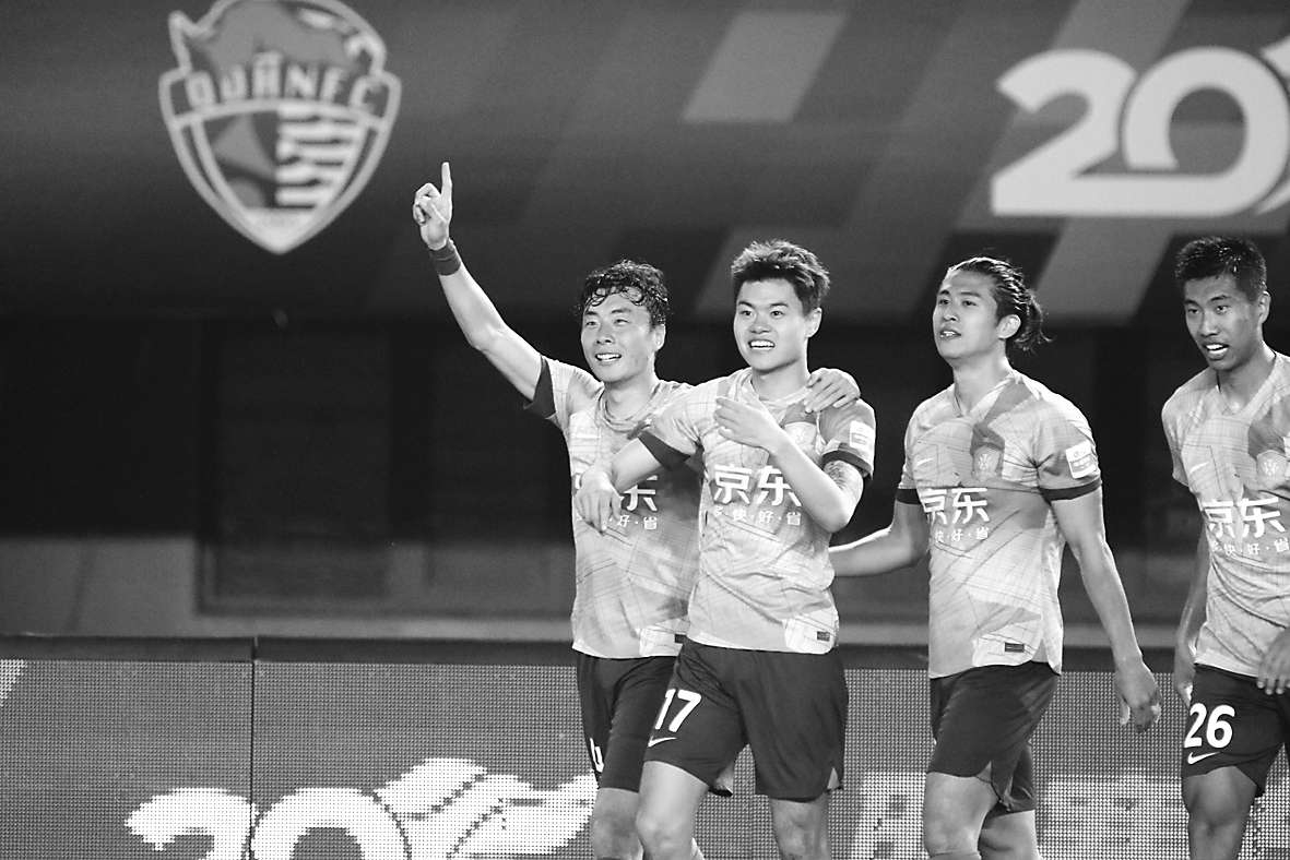 与河南队的比赛终场哨声吹响,北京国安队门将韩佳奇亲吻了自己的手套,然后缓慢抬起头,看到电子记分牌上的1比0,脸上露出了久违的笑容。