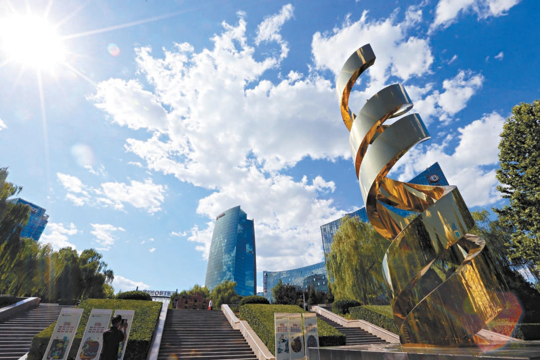 在中关村广场,生命螺旋大型雕塑彰显着这片创新高地的勃勃生机。 本报记者 饶强 摄
